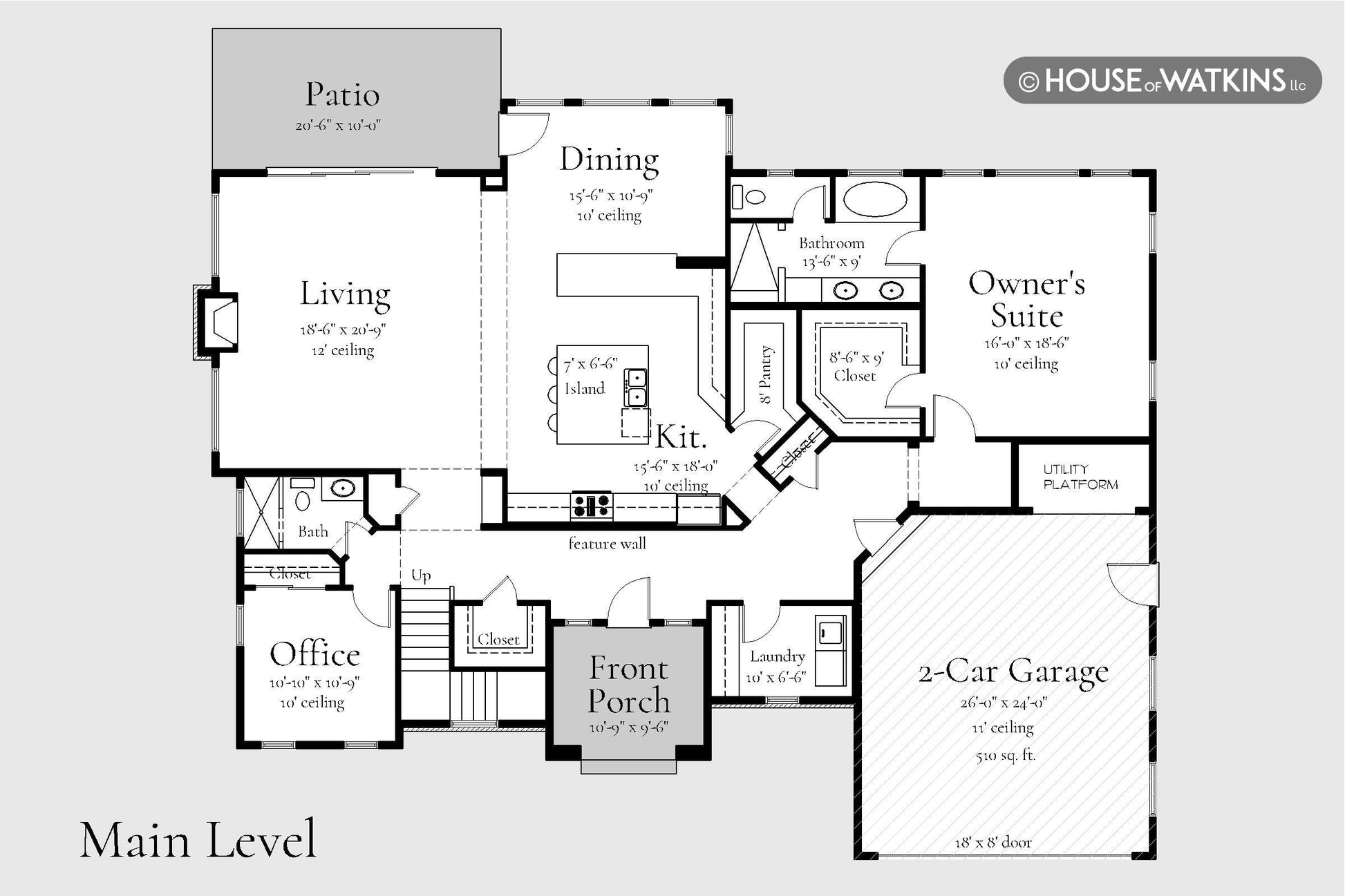 Garage: 2-Car, front-load attached, 510 sq. ft.